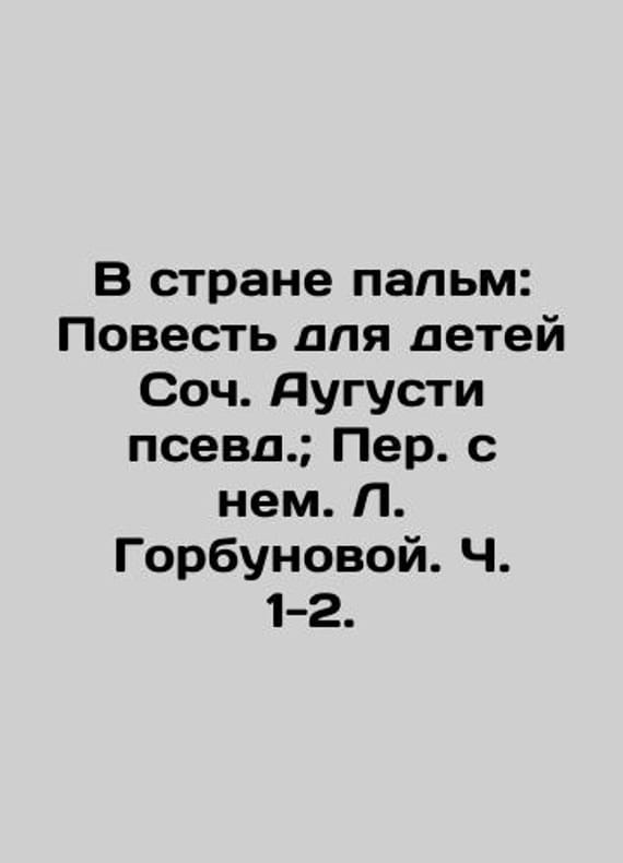 "In the Land of Palm: A Tale for Children by Augusti Pseudo; Translated with him by L. Gorbunova, pp. 1-2./V strane palm: Povest dlya detey Soch. Augusti psevd.; Per. s nem. L. Gorbunovoy. Ch. 1-2. In the Land of Palm: A Tale for Children by Augusti Pseudo; Translated with him by L. Gorbunova. Part 1-2 -St. Petersburg: A. Davydov-2 Vol.; 18.- (Rev. Golyakhovskys outbursts). We have thousands of titles and often several copies of each title may be available. Please feel free to contact us for a detailed description of the copies available. SKUbd-9593e091986580f1."