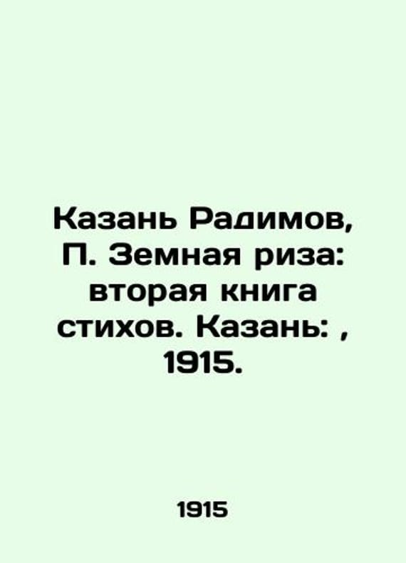 Kazan Radimov, Zemnaya Riza: the second book of poems. Kazan:, 1915./Kazan Radimov, Zemnaya riza: vtoraya kniga stikhov. Kazan:, 1915. Kazan Radimov, Zemnaya Riza: Second Book of Poems. Kazan:, 1915. We have thousands of titles and often several copies of each title may be available. Please feel free to contact us for a detailed description of the copies available. SKUbd-963f8dce7de40bc3.