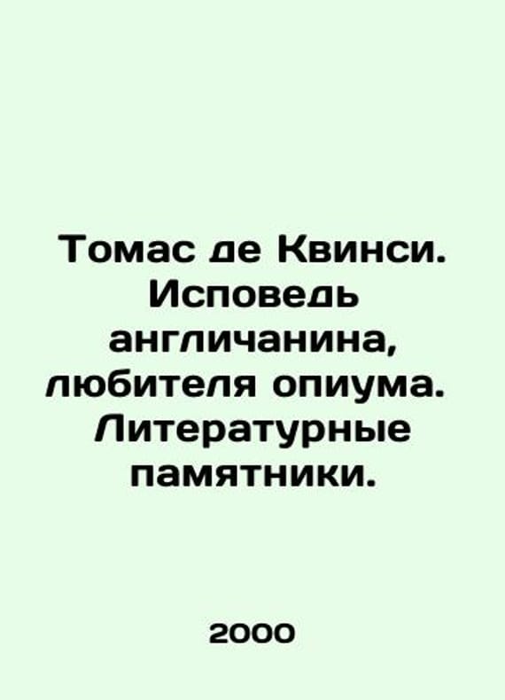 Thomas de Quincy. Confession of an English opium lover. Literary monuments./Tomas de Kvinsi. Ispoved anglichanina, lyubitelya opiuma. Literaturnye pamyatniki. M.-L. Nauka. Ladomir. 2000. 424s. We have thousands of titles and often several copies of each title may be available. Please feel free to contact us for a detailed description of the copies available. SKUbd-968ee2f46577b95c.