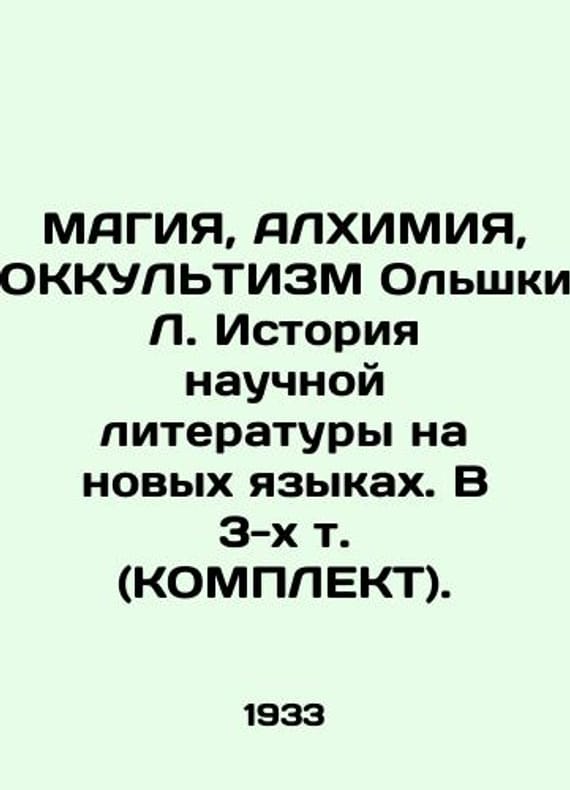 MAGIA, ALCHEMIA, OCCULTISM Olschka L. History of scientific literature in new languages. In 3 Vol. (KOMPLECT)./MAGIYa, ALKhIMIYa, OKKULTIZM Olshki L. Istoriya nauchnoy literatury na novykh yazykakh. V 3-kh t. (KOMPLEKT). M-L. GTTI. 1933-34, 304 and 212 and 324 We have thousands of titles and often several copies of each title may be available. Please feel free to contact us for a detailed description of the copies available. SKUbd-d852098ff3a1fdae.