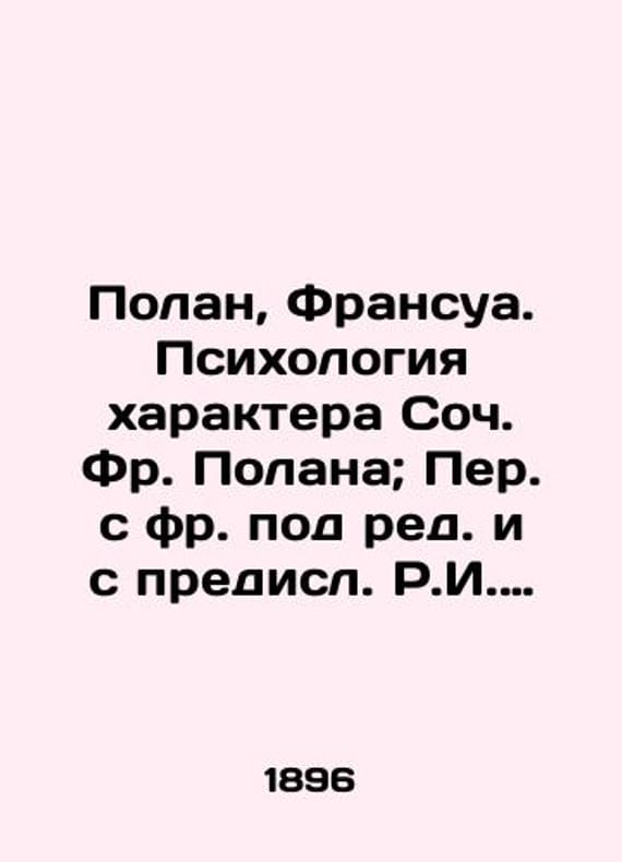 "Polan, Francois. The Psychology of the Character of Soc. Fr. Polan; Translated from French under the editorship and with the introduction of R.I. Sementkovsky. -St. Petersburg: F. Pavlenkov, 1896.-4, X, 208 p./Polan, Fransua. Psikhologiya kharaktera Soch. Fr. Polana; Per. s fr. pod red. i s predisl. R.I. Sementkovskogo.-Sankt-Peterburg: F. Pavlenkov, 1896.-4, X, 208 s. Polan, Francois. The Psychology of the Character of Soc. Fr. Polan; Translated from French under the editorship and with the introduction of R.I. Sementkovsky. -St. Petersburg: F. Pavlenkov, 1896.-4, X, 208 We have thousands of titles and often several copies of each title may be available. Please feel free to contact us for a detailed description of the copies available. SKUbd-96f798849ab8849f."