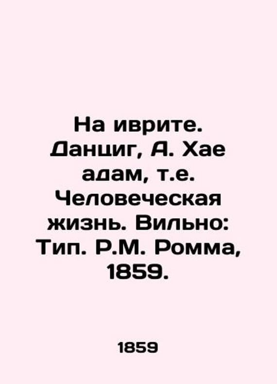 In Hebrew. Danzig, A. Hae Adam, i.e. Human life. Willy: Type. R.M. Romm, 1859./Na ivrite. Dantsig, A. Khae adam, t.e. Chelovecheskaya zhizn. Vilno: Tip. R.M. Romma, 1859. In Hebrew. Danzig, A. Hae Adam, i.e. Human life. Willy: Type. R.M. Romm, 1859. We have thousands of titles and often several copies of each title may be available. Please feel free to contact us for a detailed description of the copies available. SKUbd-98627e35ae8d7158.