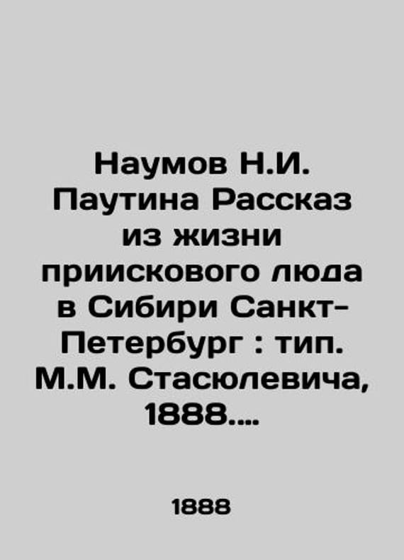 Naumov N.I. Web Story from the life of a natural resource man in Siberia St. Petersburg: type. M.M. Stasyulevich, 1888. 233 p./Naumov N.I. Pautina Rasskaz iz zhizni priiskovogo lyuda v Sibiri Sankt-Peterburg: tip. M.M. Stasyulevicha, 1888. 233 s. A Story from the Life of a Miner in Siberia.We have thousands of titles and often several copies of each title may be available. Please feel free to contact us for a detailed description of the copies available. SKUbd-9969527c6d4e0369.