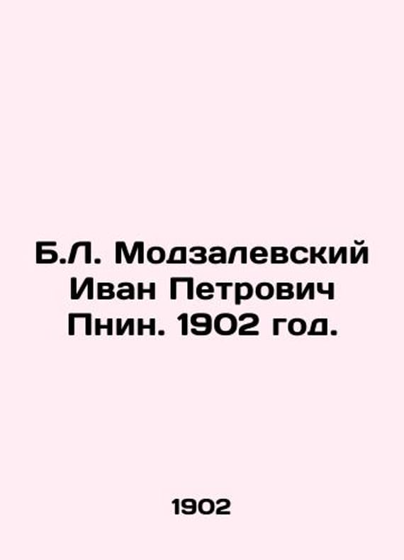 B.L. Modzalevsky Ivan Petrovich Pnin. 1902./B.L. Modzalevskiy Ivan Petrovich Pnin. 1902 god. I.N. Skorokhodovs typography. Biographical essay. From the Russian Biographical Dictionary. St. Petersburg, 1902. Ivan Petrovich Pnin (1773-1805) is a Russian poet and publicist, the primary representative of educational thought at the turn of the eighteenth and nineteenth centuries, associated with A. N. Radischevs entourage. Member (since 1802), President (since 1805) of the Free Society of Lovers of Literature, Sciences and Arts. We have thousands of titles and often several copies of each title may be available. Please feel free to contact us for a detailed description of the copies available. SKUbd-997e56736174f08.