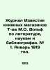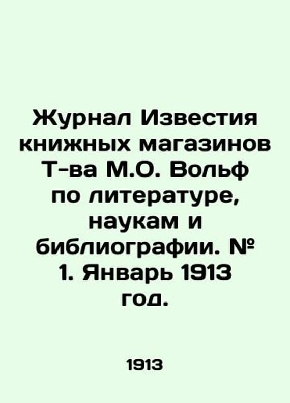 Izvestia of bookstores by T. M. O. Wolf on literature, science and bibliography. # 1. January 1913./Zhurnal Izvestiya knizhnykh magazinov T-va M.O. Volf po literature, naukam i bibliografii. # 1. Yanvar 1913 god. Edition of the Association of M.O. Wolf. Year of Edition XVI. St. Petersburg, 1913. We have thousands of titles and often several copies of each title may be available. Please feel free to contact us for a detailed description of the copies available. SKUbd-99ab0c8045e26efe.