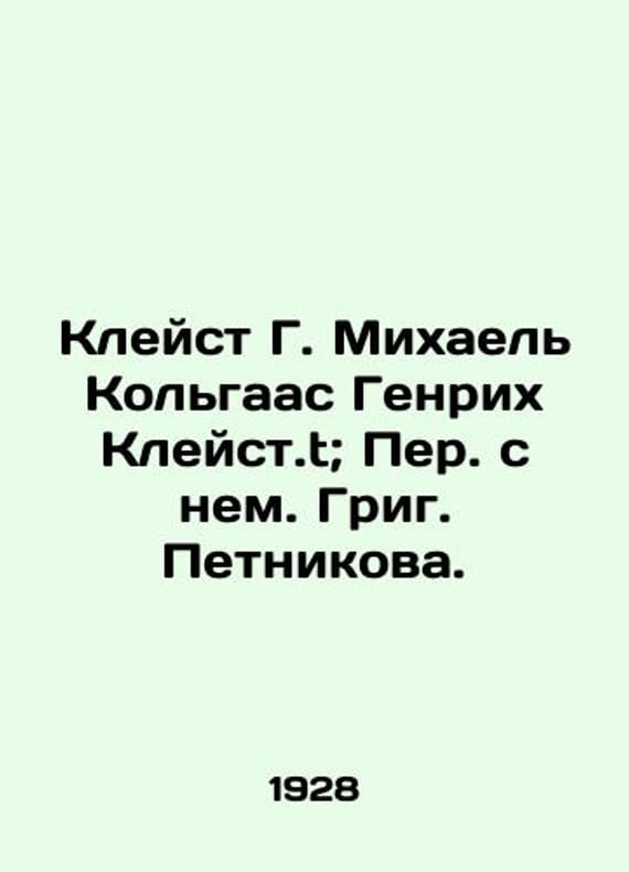 "Kleist G. Michael Kolgaas Heinrich Kleist.t; Translated with him. Grig. Petnikova./Kleyst G. Mikhael Kolgaas Genrikh Kleyst.t; Per. s nem. Grig. Petnikova. (1928 ACADEMIA) Kleist G. Michael Kohlgaas Heinrich Kleist.t; Translated by Grieg Petnikov. -Leningrad: Academia, 1928. We have thousands of titles and often several copies of each title may be available. Please feel free to contact us for a detailed description of the copies available. SKUbd-99d1db0c13ded519."