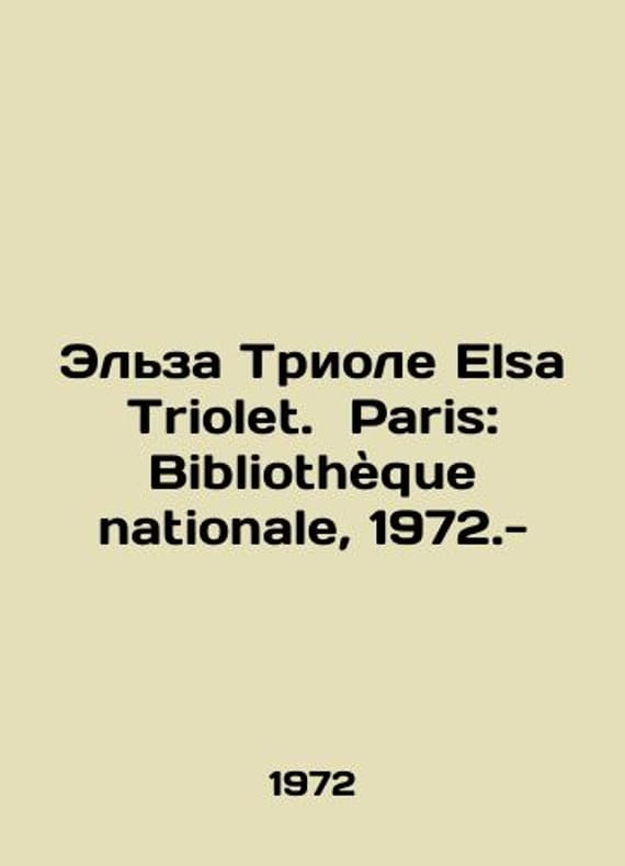 Elsa Triolet Elsa Triolet. Paris: Bibliotheque nationale, 1972.-/Elza Triole Elsa Triolet. Paris: Bibliotheque nationale, 1972.- Elsa Triolet Elsa Triolet. Paris: Bibliotheque nationale, 1972.-139, 1 p.: il., fax. We have thousands of titles and often several copies of each title may be available. Please feel free to contact us for a detailed description of the copies available. SKUbd-9a0996ba0c8cb5cc.