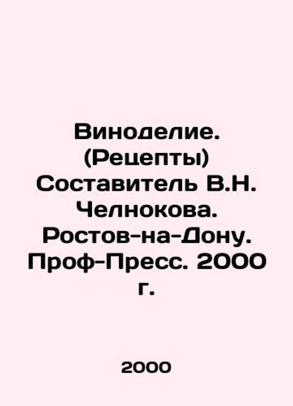 Winemaking. (Recipes) Savitel V.H. Chelnokova. Rostov-on-Don/Vinodelie. (Retsepty) Costavitel V.H. Chelnokova. Rostov-na-Donu. Ppof-Ppecc. 2000 g. Winemaking. (Recipes) Stavitel V.H. Chelnokova. Rostov-on-Don. Ppof-Ppecc. 2000. 224 p. Original recipes of experienced winemakers, stapinny and covremenny. Home wines, Nactoiki, Halivki, Cladka vodka, Likepi, Pom in home wines, Punshi, Glintveins and gpogi, Krushon, Flippi, Flip, Koblers, Pivo homemade, Cocktails. We have thousands of titles and often several copies of each title may be available. Please feel free to contact us for a detailed description of the copies available. SKUbd-9ad6f3b04f6fb762.