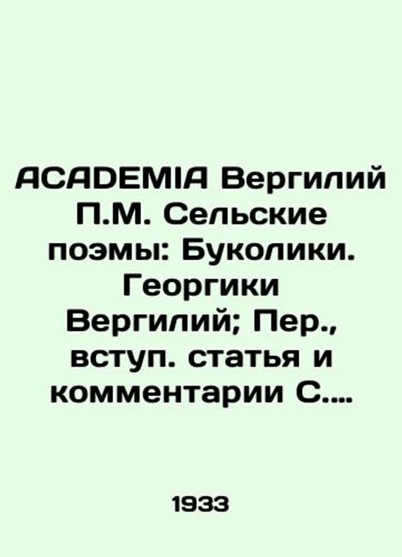"ACADEMIA Virgil P.M. Rural Poems: Bucolics. Georgi Virgil; Peter, introduction, article and commentary by S. Shervinsky./ACADEMIA Vergiliy P.M. Selskie poemy: Bukoliki. Georgiki Vergiliy; Per., vstup. statya i kommentarii S. Shervinskogo. ACADEMIA Virgil P.M. Rural poems: Bucolics. Georgi Virgil; Peter, introduction article and comments by S. Shervinsky-Moscow; Leningrad: Academia, MCMXXXIII 1933 (Leningrad: type named after Yves Fedorov). We have thousands of titles and often several copies of each title may be available. Please feel free to contact us for a detailed description of the copies available. SKUbd-9af7f137bd7b4c00."