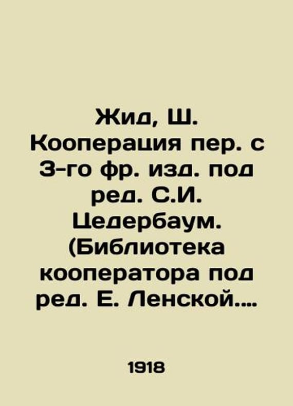 Yid, Sh. Cooperative Translated from the 3rd French edition edited by S.I. Cederbaum. (Cooperators Library edited by E. Lenskaya. # 44)./Zhid, Sh. Kooperatsiya per. s 3-go fr. izd. pod red. S.I. Tsederbaum. (Biblioteka kooperatora pod red. E. Lenskoy. # 44). Yid, Sh. Cooperative Translated from the 3rd French edition edited by S.I. Cederbaum. (Cooperators Library edited by E. Lenskaya. # 44). 2nd Moscow edition: Publishing House of the All-Russian Central Union of Consumer Societies, 1918. We have thousands of titles and often several copies of each title may be available. Please feel free to contact us for a detailed description of the copies available. SKUbd-9dda89af65d42dd8.