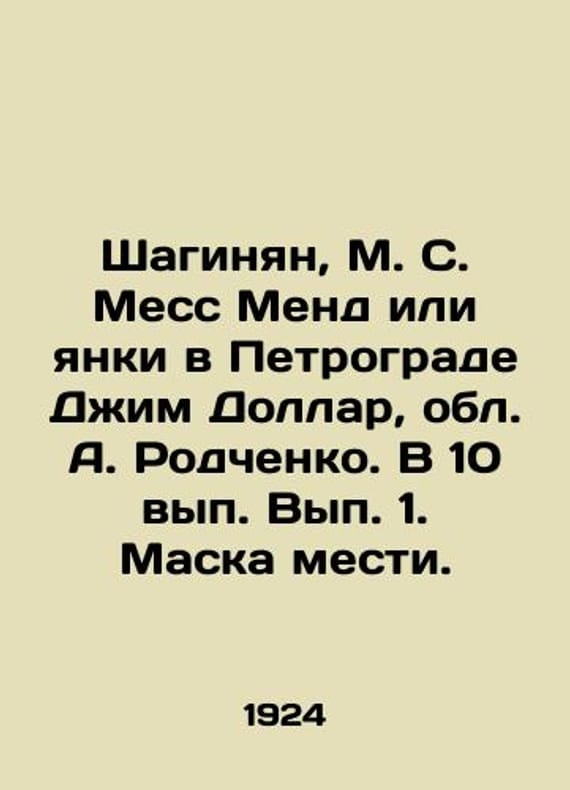 "Shahinyan, M. S. Mess Mend or the Yankees in Petrograd Jim Dollar, A. Rodchenko region/Shaginyan, M. S. Mess Mend ili yanki v Petrograde Dzhim Dollar, obl. A. Rodchenko. V 10 vyp. Vyp. 1. Maska mesti. Shahinyan, M. S. Mess Mend or Yankee in Petrograd Jim Dollar, A. Rodchenko Region. In 10 Issue 1. Mask of Revenge. M.; L.: State Publishing House, 1924. We have thousands of titles and often several copies of each title may be available. Please feel free to contact us for a detailed description of the copies available. The delivery of this book might be delayed beyond the usual timeframe due to extended processing and preparation before shipment, and faster shipping options are not offered. Please inform us if you need the order by a certain date or have a deadline.SKUbd-9e0efc0ad1148a3e"
