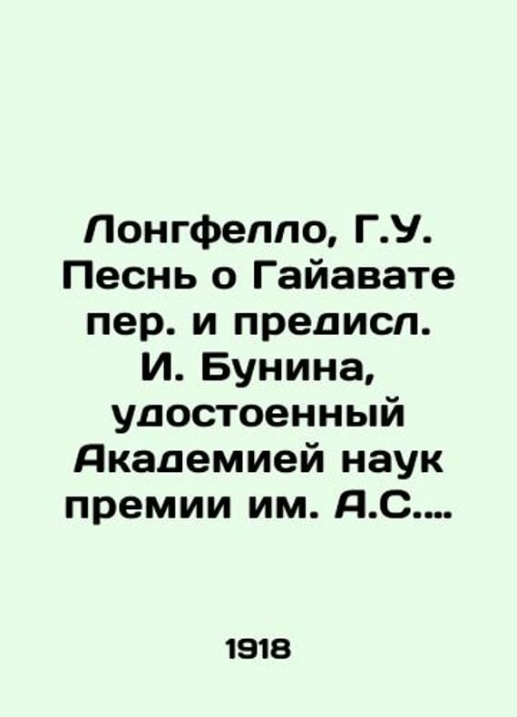 Longfello, G.W. The Song of Hiawatha Translated and Presented by I. Bunin, awarded by the Pushkin Academy of Sciences./Longfello, G.U. Pesn o Gayavate per. i predisl. I. Bunina, udostoennyy Akademiey nauk premii im. A.S. Pushkina. Longfello, G.U. The Song of Hiawatha Translated and Presented by I. Bunin, awarded by the Pushkin Academy of Sciences, Moscow: M. and S. Sabashnikov, 1918. We have thousands of titles and often several copies of each title may be available. Please feel free to contact us for a detailed description of the copies available. SKUbd-9f0731b8a4cbeb62.