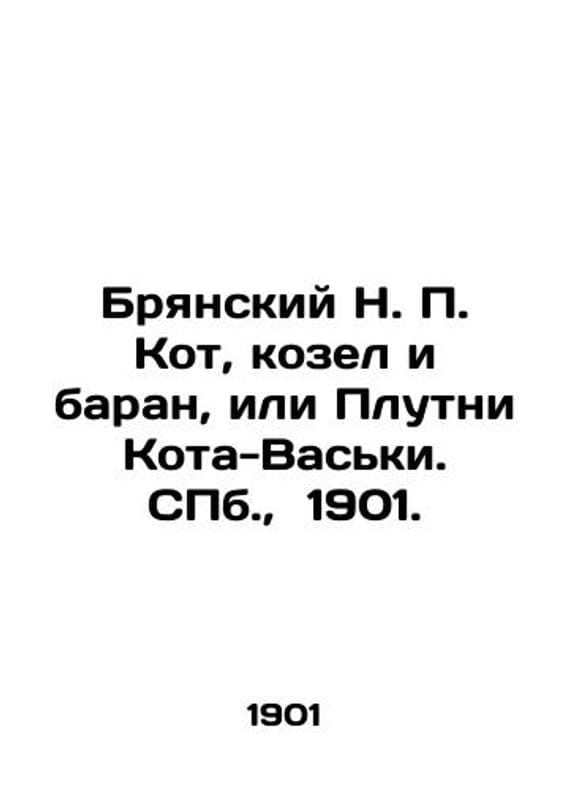 "Bryansky N. Kot, Goat and Lamb, or Plutni Kota-Vaski. St. Petersburg, 1901./Bryanskiy N. Kot, kozel i baran, ili Plutni Kota-Vaski. S.Pb. 1901. Notes: An Opera for Children in 3 Paintings; Muz. N. Bryansky; words by I. Kalashnikov, 2nd ed. St. Petersburg: 1901.-80 p.:. We have thousands of titles and often several copies of each title may be available. Please feel free to contact us for a detailed description of the copies available. SKUbd-9f16100ed06bed49."