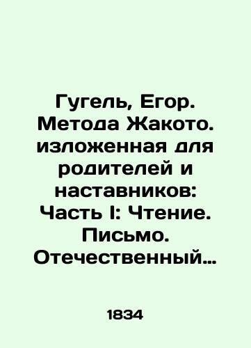 Gugel, Yegor. Jacot Method for parents and mentors: Part I: Reading. Writing. Native language./Gugel, Egor. Metoda Zhakoto. izlozhennaya dlya roditeley i nastavnikov: Chast I: Chtenie. Pismo. Otechestvennyy yazyk. St. Petersburg in Konrad Wingebers Typography, 2, 118 We have thousands of titles and often several copies of each title may be available. Please feel free to contact us for a detailed description of the copies available. SKUbd-9f7a2eaa5f09c3c0.
