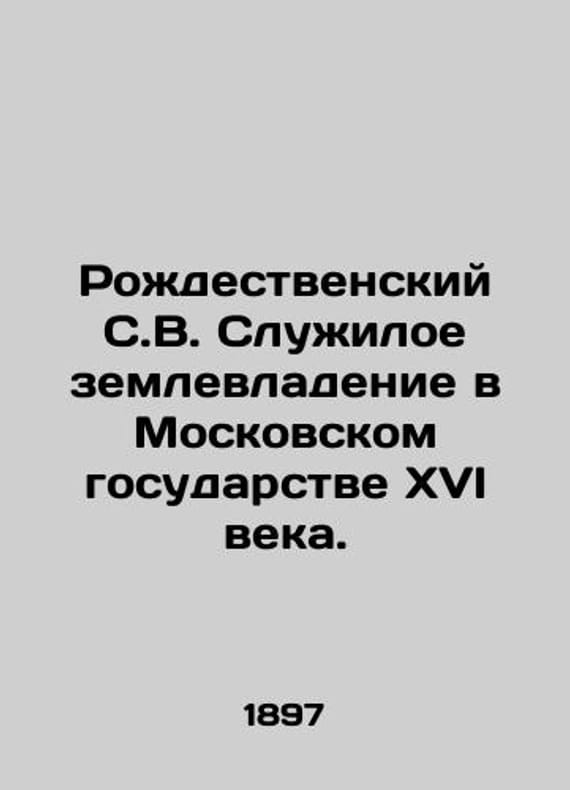 Rozhdestvensky S. V. Serviceable land ownership in the sixteenth century Moscow state. In Russian /Rozhdestvenskiy S. V. Sluzhiloe zemlevladenie v Moskovskom gosudarstve XVI veka. V. Demakovs printing press, 1897. 403 p. 25,5x17 sm. We have thousands of titles and often several copies of each title may be available. Please feel free to contact us for a detailed description of the copies available. SKUalb055a9699fb1ec4a0.