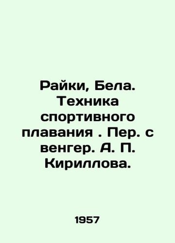 Riki, Bela. Sports swimming technique. Translated from Hungarian A. Kirillov./Rayki, Bela. Tekhnika sportivnogo plavaniya . Per. s venger. A. Kirillova. A scientifically sound and logical description of the techniques of modern sports swimming with an analysis of the best ways to perform movements. A section on the training system for an athlete-swimmer, which describes a four-period training plan.. SKUbd-a1558ad69cdab67.We have thousands of titles and often several copies of each title may be available. Please feel free to contact us for a detailed description of the copies available. The delivery of this book might be delayed beyond the usual time due to extended processing and preparation before shipment, and faster shipping options are not offered. Please inform us if you need the order by a certain date or have a deadline.SKUbd-a1558ad69cdab67