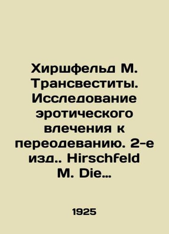 Hirschfeld M. Transvestites. Investigation of the erotic attraction to changing clothes. 2nd edition Hirschfeld M. Die Transvestiten. Eine Untersuchung uber den Erotischen Verkleidungstrieb. 2 auflage. Leipzig: Wahrheit Ferdinand Spohr, 1925./Khirshfeld M. Transvestity. Issledovanie eroticheskogo vlecheniya k pereodevaniyu. 2-e izd. Hirschfeld M. Die Transvestiten. Eine Untersuchung ueber den Erotischen Verkleidungstrieb. 2 auflage. Leipzig: Wahrheit Ferdinand Spohr, 1925. Hirschfeld M. Transvestites. Investigation of the erotic attraction to changing clothes. 2nd edition Hirschfeld M. Die Transvestiten. Eine Untersuchung uber den Erotischen Verkleidungstrieb. 2 auflage. Leipzig: Wahrheit Ferdinand Spohr, 1925. We have thousands of titles and often several copies of each title may be available. Please feel free to contact us for a detailed description of the copies available. SKUbd-a18fe7c51f4f850b.