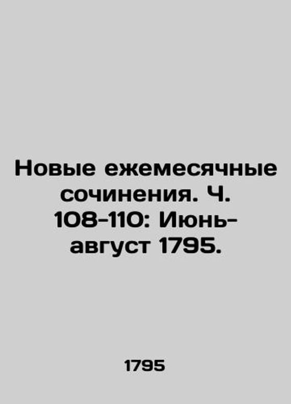 New Monthly Works, pp. 108-110: June-August 1795./Novye ezhemesyachnye sochineniya. Ch. 108-110: Iyun-avgust 1795. New Monthly Works. Part 108-110: June-August 1795. St. Petersburg: Dependency on Imperial Akad. Science, 1795. Part 108: Month of June. Part 109: Month of July. Part 102: Month of August. 96 We have thousands of titles and often several copies of each title may be available. Please feel free to contact us for a detailed description of the copies available. SKUbd-a1e28641a77dcc8.