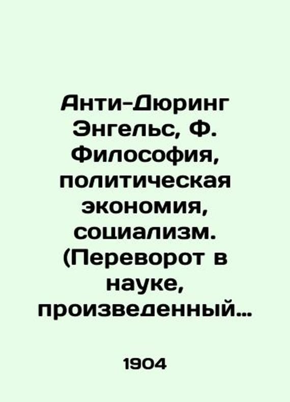 Anti-Duhring Engels, F. Philosophy, Political Economy, Socialism. (Duhrings Revolution in Science)./Anti-Dyuring Engels, F. Filosofiya, politicheskaya ekonomiya, sotsializm. (Perevorot v nauke, proizvedennyy Dyuringom). Anti-Duhring Engels, F. Philosophy, Political Economy, Socialism. St. Petersburg: 1904.We have thousands of titles and often several copies of each title may be available. Please feel free to contact us for a detailed description of the copies available. SKUbd-a24b2ae10a02aa2c.