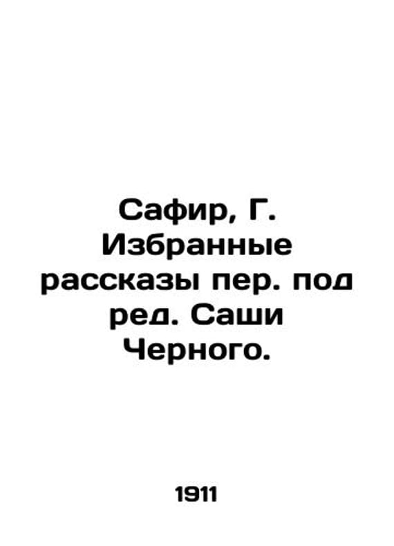 Safir, G. Selected Stories, edited by Sacha Cherny./Safir, G. Izbrannye rasskazy per. pod red. Sashi Chernogo. Safir, G. Selected Stories, edited by Sacha Cherny. St. Petersburg: Rosewood, 1911. 1 l. We have thousands of titles and often several copies of each title may be available. Please feel free to contact us for a detailed description of the copies available. SKUbd-b1d9ba120d9bcb82.