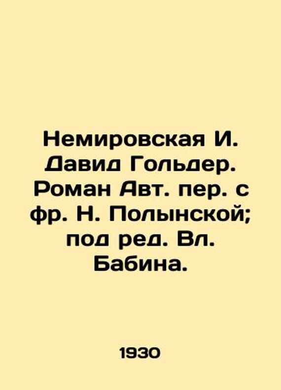 "Nemirovskaya I. David Golder. Roman by Autobiography with N. Polynskaya; edited by Vl. Babin./Nemirovskaya I. David Golder. Roman Avt. per. s fr. N. Polynskoy; pod red. Vl. Babina. Nemirovskaya I. David Golder. Roman Autobiography with N. Polynskaya; edited by Vl. Babin. Riga: The Book for All, 1930. 162, 2 p.;. We have thousands of titles and often several copies of each title may be available. Please feel free to contact us for a detailed description of the copies available. SKUbd-a2979b5aacd41980."
