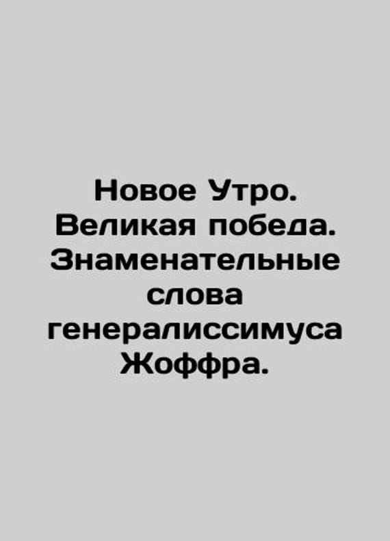 New Morning. Great Victory. Significant words by Generalissimo Joffre./Novoe Utro. Velikaya pobeda. Znamenatelnye slova generalissimusa Zhoffra. New Morning. Great Victory. Significant words by Generalissimo Joffre. And a prediction of the original end of the Great War. We have thousands of titles and often several copies of each title may be available. Please feel free to contact us for a detailed description of the copies available. SKUbd-a311d4e7b2e8aa25.