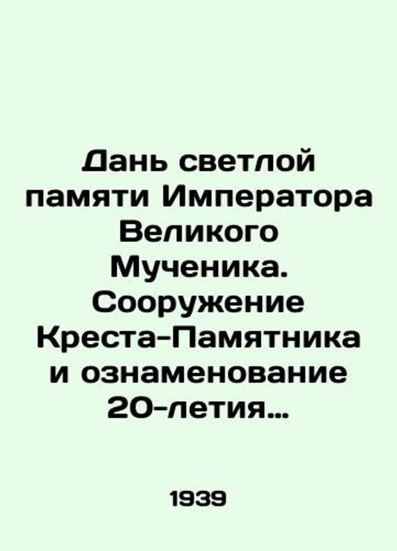 Tribute to the glorious memory of the Emperor the Great Martyr. Construction of the Cross-Monument and commemoration of the 20th anniversary of the Yekaterinburg drama/Dan svetloy pamyati Imperatora Velikogo Muchenika. Sooruzhenie Kresta-Pamyatnika i oznamenovanie 20-letiya Ekaterinburgskoy dramy. Izdanie Soyuza Revniteley pamyati Imperatora Nikolaya II Parizh Tribute to the glorious memory of the Emperor the Great Martyr. Construction of the Monument Cross and commemoration of the 20th anniversary of the Yekaterinburg drama. Edition of the Union of Jealous in Memory of Emperor Nicholas II: Paris: 1939, 144s.We have thousands of titles and often several copies of each title may be available. Please feel free to contact us for a detailed description of the copies available. The delivery of this book might be delayed beyond the usual timeframe due to extended processing and preparation before shipment, and faster shipping options are not offered. Please inform us if you need the order by a certain date or have a deadline.SKUbd-a468ff7bdb88a7c3