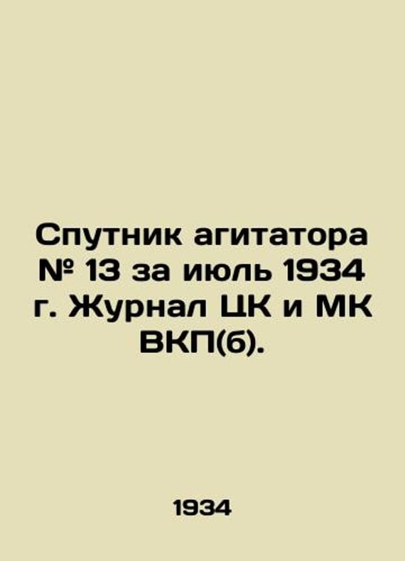 Agitators Sputnik # 13 of July 1934, Journal of the Central Committee and MK of the C.S.U. (b)./Sputnik agitatora # 13 za iyul 1934 g. Zhurnal TsK i MK VKP(b). Sputnik agitator # 13 of July 1934, Journal of the Central Committee and MK of the Communist Party (b). Moscow: 1934. 64 p., il.: 23x16 sm.We have thousands of titles and often several copies of each title may be available. Please feel free to contact us for a detailed description of the copies available. SKUbd-a4a244d01213124b.