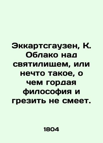 Eckartshausen, K. A cloud over the sanctuary, or something that a proud philosophy dares not dream of./Ekkartsgauzen, K. Oblako nad svyatilishchem, ili nechto takoe, o chem gordaya filosofiya i grezit ne smeet. Eckartshausen, K. A cloud over the sanctuary, or something that a proud philosophy dares not dream of. St. Petersburg: In the Imperial type., 1804. 2, II, 154, 2 p. 16,8 - 10,5 sm. We have thousands of titles and often several copies of each title may be available. Please feel free to contact us for a detailed description of the copies available. SKUbd-a4b8d606ac366edc.