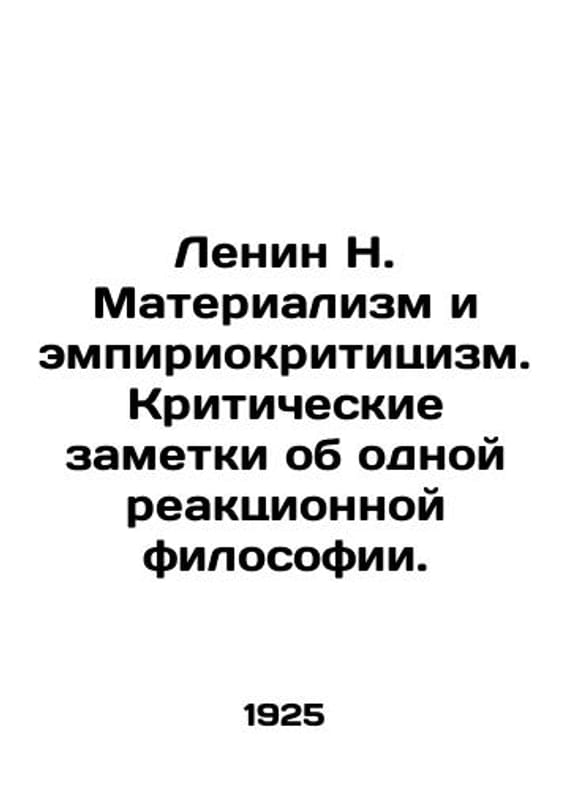 Lenin N. Materialism and Empiricism. Critical Notes on a Reactionary Philosophy./Lenin N. Materializm i empiriokrititsizm. Kriticheskie zametki ob odnoy reaktsionnoy filosofii. Leningrad State Publishing House 1925. 306 We have thousands of titles and often several copies of each title may be available. Please feel free to contact us for a detailed description of the copies available. SKUbd-a5099dd2544c0f6e.