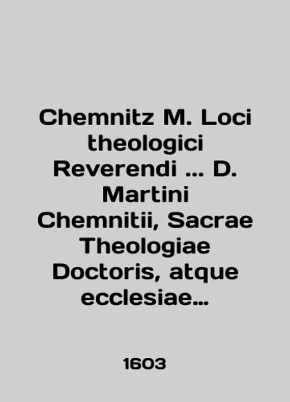 Chemnitz M. Loci theologici Reverendi.. D. Martini Chemnitii, Sacrae Theologiae Doctoris, atque ecclesiae Brunsvicensis quondam superintendentis.. MDCIII. (In Latin) - (Chemnitz Martin. Key Questions of Theology. Frankfurt, 1603).-/Chemnitz M. Loci theologici Reverendi.. D. Martini Chemnitii, Sacrae Theologiae Doctoris, atque ecclesiae Brunsvicensis quondam superintendentis.. MDCIII. (Na lat. yaz.)-(Khemnits Martin. Klyuchevye voprosy bogosloviya. Frankfurt, 1603).- Chemnitz M. Loci theologici Reverendi.. D. Martini Chemnitii, Sacrae Theologiae Doctoris, atque ecclesiae Brunsvicensis quondam superintendentis.. MDCIII. (Chemnitz Martin. Key Questions of Theology. Frankfurt, 1603) -16, 616, 22 We have thousands of titles and often several copies of each title may be available. Please feel free to contact us for a detailed description of the copies available. SKUbd-a5ca482bb7ad53e8.
