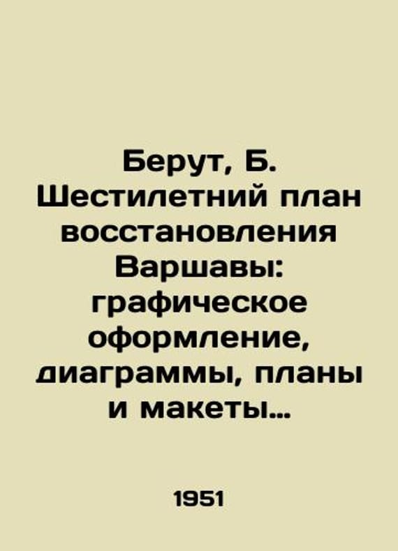 Berut, B. The Six-Year Plan for the Reconstruction of Warsaw: Graphic design, diagrams, plans and layouts based on materials and designs of the Warsaw Planning Bureau. Warsaw: Ksenzka and Wedza, 1951. 367, 1 p., 34 - 25 sm./Berut, B. Shestiletniy plan vosstanovleniya Varshavy: graficheskoe oformlenie, diagrammy, plany i makety vypolneny na osnove materialov i proektov byuro po planirovaniyu Varshavy. Varshava: Ksenzhka i Vedza, 1951. 367, 1 s., il. 34-25 sm. One of the main techniques of this publication is to compare before and after photos. This is an extremely winning form, because before 1945, the first post-war year, and after 1949, of course, the advantages and achievements are immediately apparent. But the main highlight of the book are 25 open sheets, which show the views and plans of the future Warsaw, Warsaw 1955, with the skyscrapers of seven Moscow high-rises, Stalins Empire. We have thousands of titles and often several copies of each title may be available. Please feel free to contact us for a detailed description of the copies available. SKUbd-a60ca17e39688ab4.