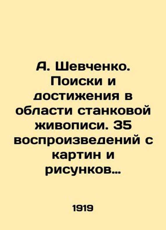 A. Shevchenko. Search and achievements in easel painting. 35 reproductions from the artists paintings and drawings. Articles by A. Grishchenko and N. Lavrsky./A. Shevchenko. Poiski i dostizheniya v oblasti stankovoy zhivopisi. 35 vosproizvedeniy s kartin i risunkov khudozhnika. Stati A. Grishchenko i N. Lavrskogo. A. Shevchenko. Search and Achievements in easel painting. 35 reproductions of the artists paintings and drawings. Articles by A. Grishchenko and N. Lavrsky. Moscow: Publishing House of the Department of Imaging Arts of the Peoples Commissariat for Enlightenment, 1919. 35 SKUbd-a7a6b24e7be0764f.We have thousands of titles and often several copies of each title may be available. Please feel free to contact us for a detailed description of the copies available. The delivery of this book might be delayed beyond the usual time due to extended processing and preparation before shipment, and faster shipping options are not offered. Please inform us if you need the order by a certain date or have a deadline.SKUbd-a7a6b24e7be0764f