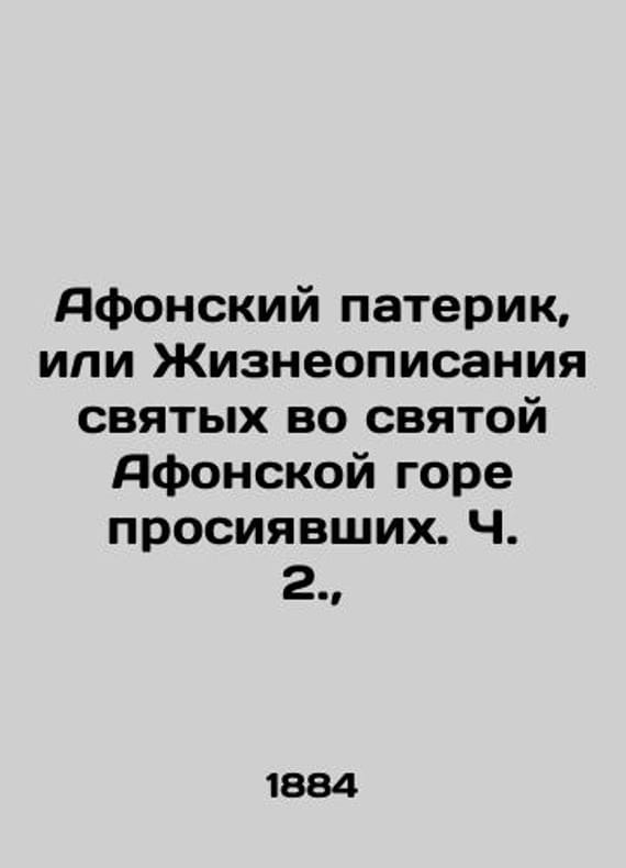 The Paterik of Athos, or The Lives of the Saints in the Holy Mount of Athos who Shined. Part 2., /Afonskiy paterik, ili Zhizneopisaniya svyatykh vo svyatoy Afonskoy gore prosiyavshikh. Ch. 2., 5th ed. Part 2.-Dependency of the Russian Panteleimonov Monastery on Mount Athos, Moscow: type I. Efimov, 1884.We have thousands of titles and often several copies of each title may be available. Please feel free to contact us for a detailed description of the copies available. SKUbd-a80f853e22379b9a.