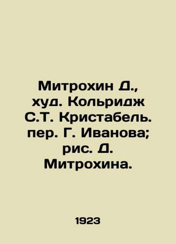 "Mitrokhin D., Coleridge S. T. Christabelle, G. Ivanov Translation; Mitrokhins Drawing/Mitrokhin D., khud. Kolridzh S.T. Kristabel. per. G. Ivanova; ris. D. Mitrokhina. Mitrokhin D., Coleridge S. T. Kristal. per G. Ivanov; figure D. Mitrokhin. Berlin: Petropolis, 1923, -58, 3 p., il. We have thousands of titles and often several copies of each title may be available. Please feel free to contact us for a detailed description of the copies available. SKUbd-a8bcfe8834bd9f68."
