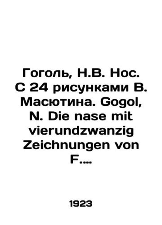 Gogol, N.V. Nose. With 24 drawings by V. Masjutin. Gogol, N. Die nase mit vierundzwanzig Zeichnungen von F. Masjutin. In German: Julius Hoffmann Verlag, 19/Gogol, N.V. Nos. S 24 risunkami V. Masyutina. Gogol, N. Die nase mit vierundzwanzig Zeichnungen von F. Masjutin. Na nem. yaz. Shtutgart: Julius Hoffmann Verlag, 19 Gogol, N.V. Nose. With 24 drawings by V. Masjutin. Gogol, N. Die nase mit vierundzwanzig Zeichnungen von F. Masjutin. In German: Julius Hoffmann Verlag, 1923. 65 p.: 25.5 - 18.5 sm.We have thousands of titles and often several copies of each title may be available. Please feel free to contact us for a detailed description of the copies available. SKUbd-a8c29d2a984d9acc.