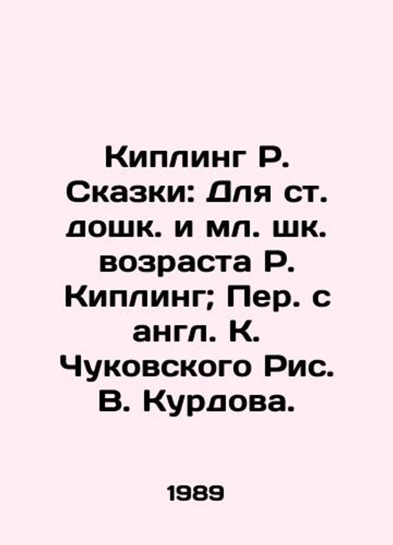 "Kipling R. Tales: For the age of R. Kipling and for the age of R. Kipling; Translation from K. Chukovskys English by V. Kurdov./Kipling R. Skazki: Dlya st. doshk. i ml. shk. vozrasta R. Kipling; Per. s angl. K. Chukovskogo Ris. V. Kurdova. (illustrations-V.Kurdov) Kipling R. Tales: For children of pre-school and junior school age R. Kipling; Translation from English K. Chukovskiy Pic. V. Kurdov-2nd ed. -L.: Detail lit. Leningrad branch, 1989.-156, 3 We have thousands of titles and often several copies of each title may be available. Please feel free to contact us for a detailed description of the copies available. SKUbd-a92642b36f3496de."