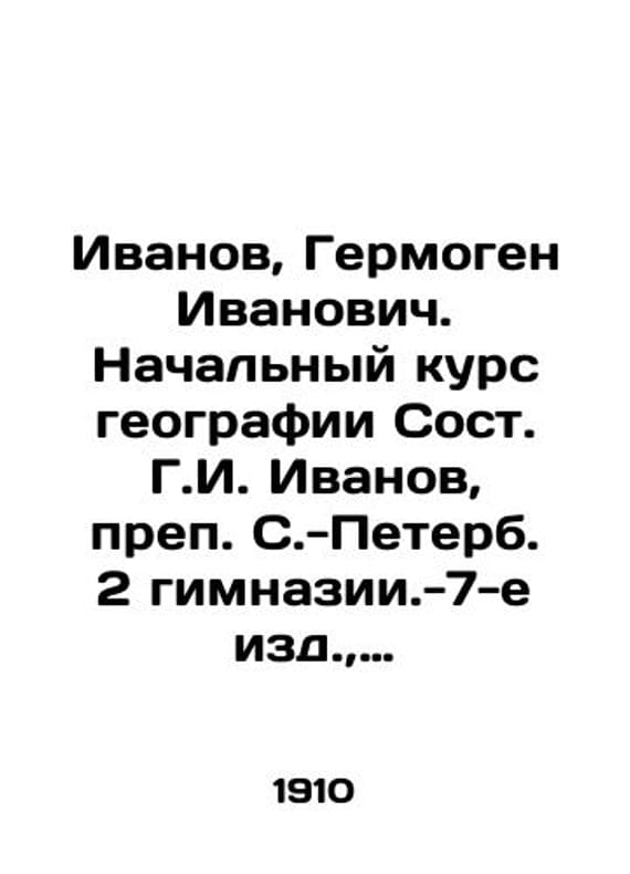 Ivanov, Hermogen Ivanovich. Initial Geography Course of St. G.I. Ivanov, Rev. St. Petersburg 2 gymnasium, 7th ed., St. Petersburg./Ivanov, Germogen Ivanovich. Nachalnyy kurs geografii Sost. G.I. Ivanov, prep. S.-Peterb. 2 gimnazii.-7-e izd., pererab. Ch. 1-.-Sankt-Peterburg Ivanov, Hermogen Ivanovich. G.I. Ivanov, Rev. St. Petersburg 2 gymnasium, 7th ed., Rev. Ch. 1---St. Petersburg: 1910, -IV, 155 c,.We have thousands of titles and often several copies of each title may be available. Please feel free to contact us for a detailed description of the copies available. SKUbd-aa62ffbf0bbe74d0.