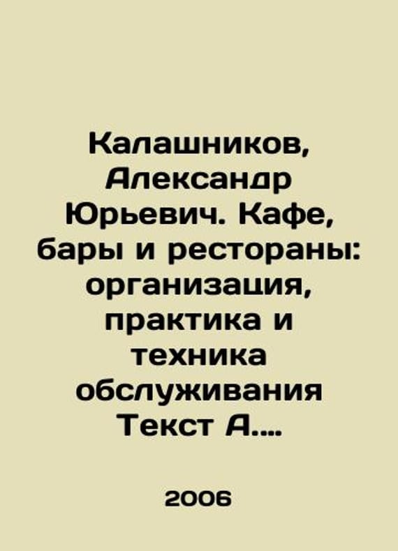 Kalashnikov, Aleksandr Yuryevich. Cafes, bars and restaurants: organization, practice and service techniques Text by A. Yu. Kalashnikov./Kalashnikov, Aleksandr Yurevich. Kafe, bary i restorany: organizatsiya, praktika i tekhnika obsluzhivaniya Tekst A. Yu. Kalashnikov. Kalashnikov, Aleksandr Yuryevich. Cafes, bars and restaurants: organization, practice and service techniques Text by A. Yu. Kalashnikov - Moscow: Prospekt, 2006.-378, 1 p. We have thousands of titles and often several copies of each title may be available. Please feel free to contact us for a detailed description of the copies available. SKUbd-ab12260be34796ed.