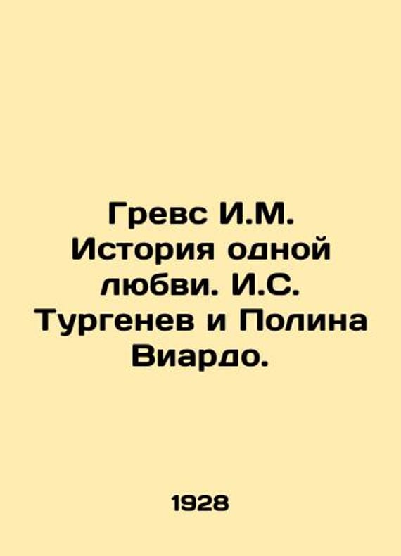 Grevs I.M. The Story of One Love. Turgenev I. S. and Pauline Viardot./Grevs I.M. Istoriya odnoy lyubvi. I.S. Turgenev i Polina Viardo. Grevs I.M. The Story of One Love. I. S. Turgenev and Paulina Viardo., revised and supplemented by M. M.: Book of Contemporary Problems by N. A. Stollyar, 1928. 370, 14 SKUbd-ab2a7cf177f6cf49.We have thousands of titles and often several copies of each title may be available. Please feel free to contact us for a detailed description of the copies available. The delivery of this book might be delayed beyond the usual time due to extended processing and preparation before shipment, and faster shipping options are not offered. Please inform us if you need the order by a certain date or have a deadline.SKUbd-ab2a7cf177f6cf49