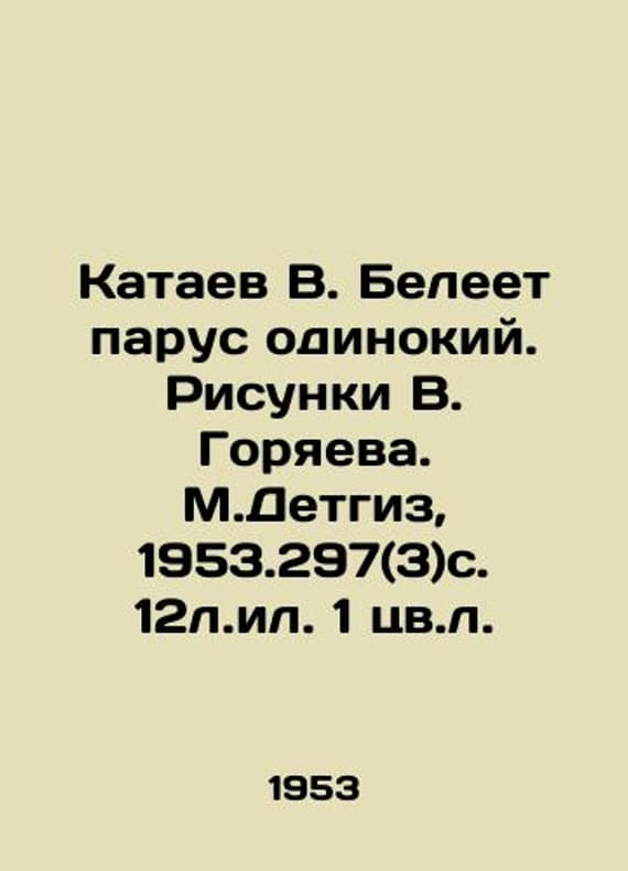 Kataev V. Beleet lonely sail. Sketches by V. Goryaev. M.Detgiz, 1953.297 (3) p. 12h.or 1 color./Kataev V. Beleet parus odinokiy. Risunki V. Goryaeva. M.Detgiz, 1953.297(3)s. 12l.il. 1 tsv.l. Kataev V. Beleet lonely sail. Sketches by V. Goryaev. M.Detgiz, 1953.297 (3) p. 12h.or 1 color.We have thousands of titles and often several copies of each title may be available. Please feel free to contact us for a detailed description of the copies available. SKUbd-ab96dcf98956995a.