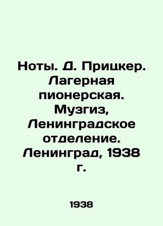 Notes by D. Pritzker. Pioneer Camp. Muzgiz, Leningrad Branch. Leningrad, 1938./Noty. D. Pritsker. Lagernaya pionerskaya. Muzgiz, Leningradskoe otdelenie. Leningrad, 1938 g. Notes by D. Pritzker. Pioneer Camp. Muzgiz, Leningrad Branch. Leningrad, 1938. We have thousands of titles and often several copies of each title may be available. Please feel free to contact us for a detailed description of the copies available. SKUbd-ac1d3abe965f4658.
