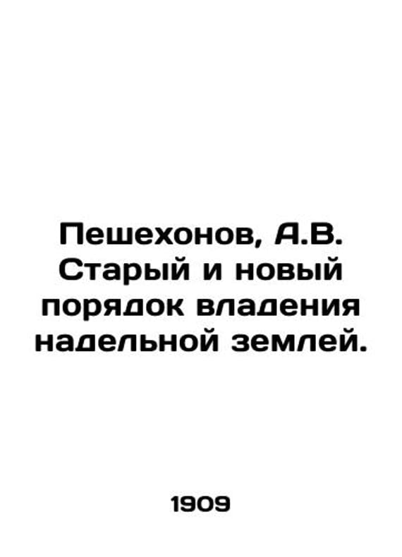 Peshekhonov, A.V. The old and new order of allotment land ownership./Peshekhonov, A.V. Staryy i novyy poryadok vladeniya nadelnoy zemley. Peshekhonov, A.V. The old and new order of allotment land ownership.We have thousands of titles and often several copies of each title may be available. Please feel free to contact us for a detailed description of the copies available. SKUbd-ac77c043413a1b3e.