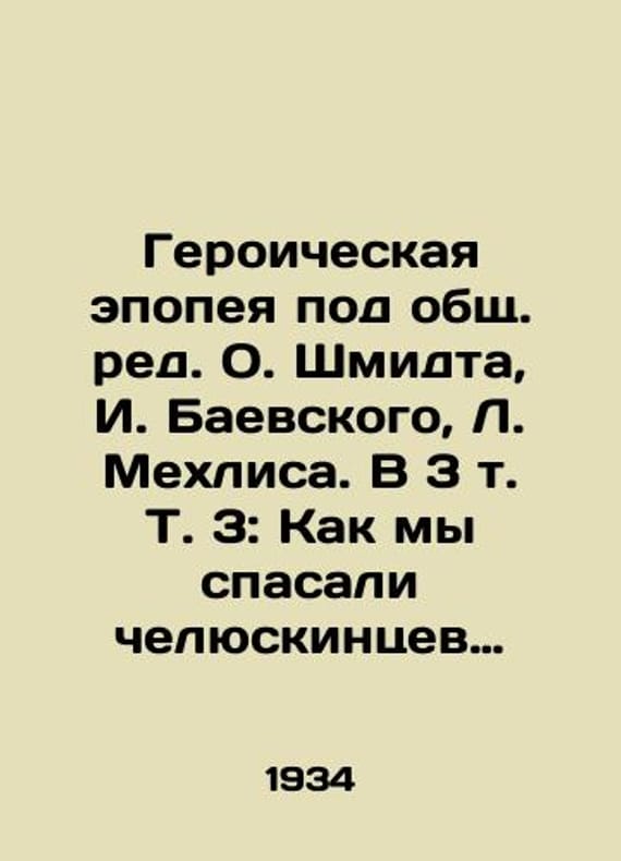 The Heroic Epic, edited by O. Schmidt, I. Baevsky, L. Mehlis. Volume 3: How We Saved Chelyuskintsev, A. Lyapidevsky, S. Levanevsky, M. Slepnev, V. Molokov, N. Kamanin, M. Vodopyanov, I. Doronin/Geroicheskaya epopeya pod obshch. red. O. Shmidta, I. Baevskogo, L. Mekhlisa. V 3 t. T. 3: Kak my spasali chelyuskintsev A. Lyapidevskiy, S. Levanevskiy, M. Slepnev, V. Molokov, N. Kamanin, M. Vodopyanov, I. Doronin khud. oforml. i tekhnich. nablyudenie khud. Freyberga, khud. S. Telingatera, khud. N. Sedelnikova. The Heroic Epic, edited by O. Schmidt, I. Baevsky, L. Mehlis. Volume 3: How We Saved Chelyuskintsev, A. Lyapidevsky, S. Levanevsky, M. Slepnev, V. Molokov, N. Kamanin, M. Vodopyanov, I. Doronin.We have thousands of titles and often several copies of each title may be available. Please feel free to contact us for a detailed description of the copies available. SKUbd-aca42657a7dbda9a.