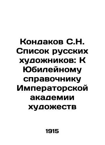 Kondakov S.N. List of Russian Artists: To the Jubilee Guide of the Imperial Academy of Arts/Kondakov S.N. Spisok russkikh khudozhnikov: K Yubileynomu spravochniku Imperatorskoy akademii khudozhestv Sergei Nikodimovich Kondakov. List of Russian artists: To the Jubilee Guide of the Imperial Academy of Arts. St. Petersburg. Partnership of R. Golika and A. Vilborg, 1915. 4, III, 2, 455, 2 We have thousands of titles and often several copies of each title may be available. Please feel free to contact us for a detailed description of the copies available. SKUbd-ad8682c70ecbf77a.