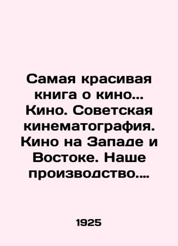 The most beautiful book about cinema.. Cinema. Soviet cinema. Cinema in the West and East. Our production. Our employees (directors, actors, cameramen). Film school and film education, edited by I.N. Bursak./Samaya krasivaya kniga o kino.. Kino. Sovetskaya kinematografiya. Kino na Zapade i Vostoke. Nashe proizvodstvo. Nashi rabotniki (rezhissery, aktery, operatory). Kinoshkola i kinoobrazovanie pod red. I.N. Bursaka. The most beautiful book about cinema.. Cinema. Soviet cinema. Cinema in the West and East. Our production. Our employees (directors, actors, cameramen). Film school and film education, edited by I.N. Bursak. Moscow: Proletkino, 1925. 104 p. We have thousands of titles and often several copies of each title may be available. Please feel free to contact us for a detailed description of the copies available. SKUbd-b055335a0f9b84ab.