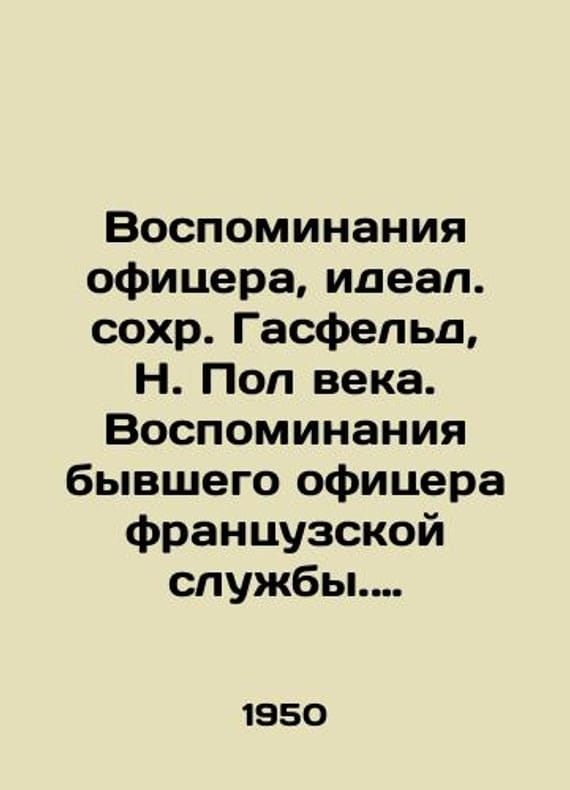 The Memoirs of an Officer, Ideal by Dr. Hasfeld, N. Paul of the Century. Memoirs of a Former French Service Officer. 1950/Vospominaniya ofitsera, ideal. sokhr. Gasfeld, N. Pol veka. Vospominaniya byvshego ofitsera frantsuzskoy sluzhby. 1950 Hasfeld, N. Paul of the Century. Memoirs of a former French officer. Paris. 1950, 176 p., 14x19 sm. We have thousands of titles and often several copies of each title may be available. Please feel free to contact us for a detailed description of the copies available. SKUbd-b3b3154918e8d8fc.
