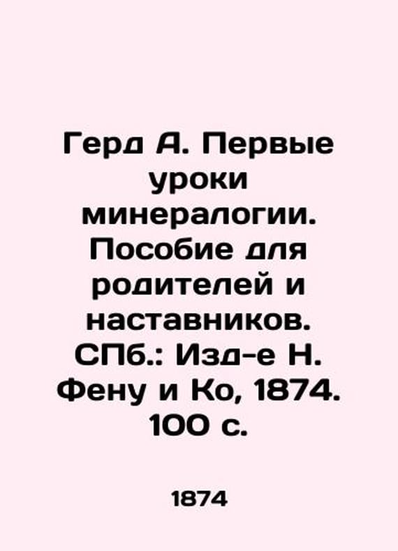 Gerd A. The First Lessons of Mineralogy. A Guide for Parents and Guides. St. Petersburg: Publishing House of N. Fenu and Co, 1874. 100 p./Gerd A. Pervye uroki mineralogii. Posobie dlya roditeley i nastavnikov. ill.: Izd-e N. Fenu i Ko, 1874. 100 s. Gerd A. The First Lessons of Mineralogy. A Guide for Parents and Guides. St. Petersburg: Publishing House of N. Fenu and Co, 1874. 100 p. We have thousands of titles and often several copies of each title may be available. Please feel free to contact us for a detailed description of the copies available. SKUbd-b458e03ef7605474.