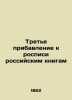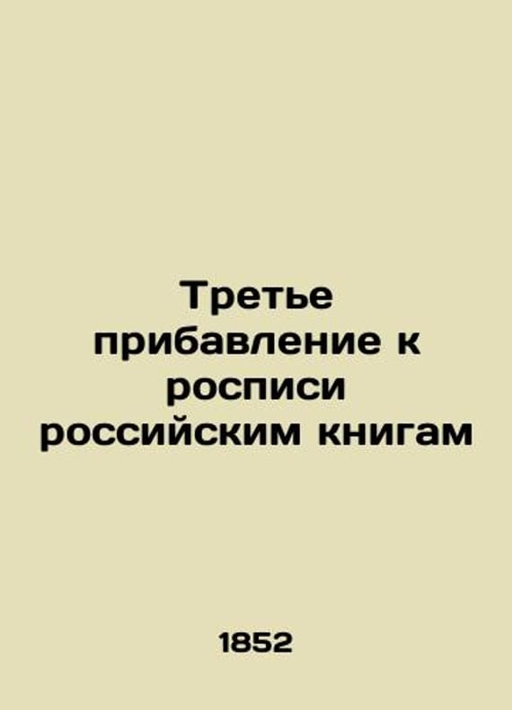 The third addition to the mural of Russian books/Trete pribavlenie k rospisi rossiyskim knigam 1) Third addendum to the mural of Russian books for reading, from Peter Krashennikovs library. (Continued to previously published murals by A.F. Smirdin). St. Petersburg. In Jacob Treys printing house. 1852. VI, 232 p. 2) Fourth addendum to the mural of Russian books for reading, from Peter Krashennikovs library. St. Petersburg. In Eduard Weimars printing house. 1856. VI, 140, VIII- VIIIWe have thousands of titles and often several copies of each title may be available. Please feel free to contact us for a detailed description of the copies available. SKUbd-b46ffdc65b4f3f0d.
