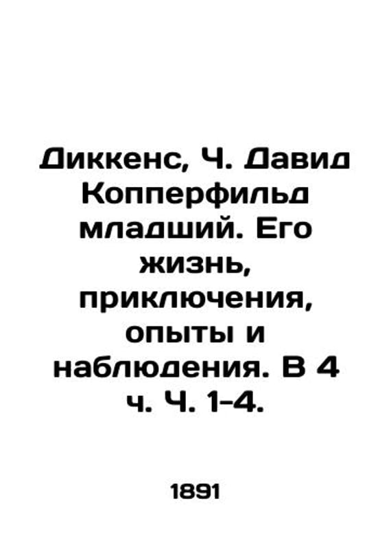 Dickens, Ch. David Copperfield Jr. His Life, Adventures, Experiences, and Observations. At 4h. 1-4./Dikkens, Ch. David Kopperfild mladshiy. Ego zhizn, priklyucheniya, opyty i nablyudeniya. V 4 ch. Ch. 1-4. Dickens, C. David Copperfield Jr., His Life, Adventures, Experiments, and Observations. At 4 pp. 1-4. St. Petersburg:, 1891.We have thousands of titles and often several copies of each title may be available. Please feel free to contact us for a detailed description of the copies available. SKUbd-b4a7c89074335c31.